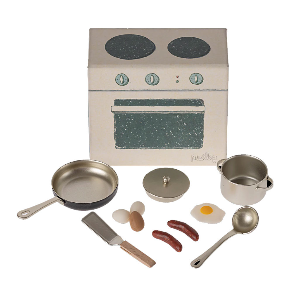 Deze set bevat keukengerei, eieren en worstjes om het perfecte