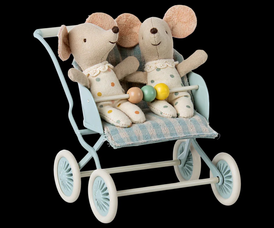 Deze kinderwagen is geschikt voor de muizenfamilie met 1 of 2 babymuisjes:)
