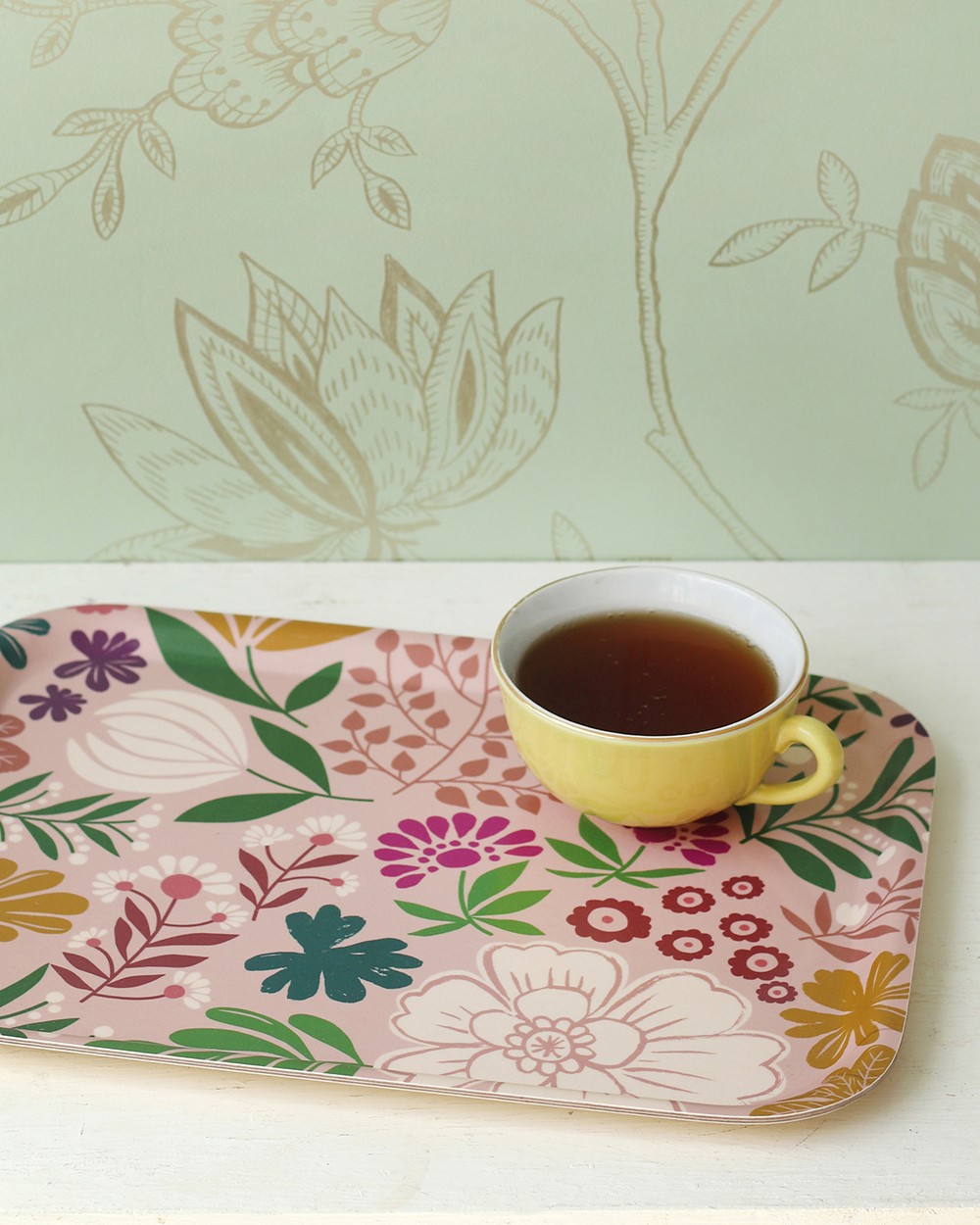 Een dienblad met een bloementuin geïnspireerd op Matisse.