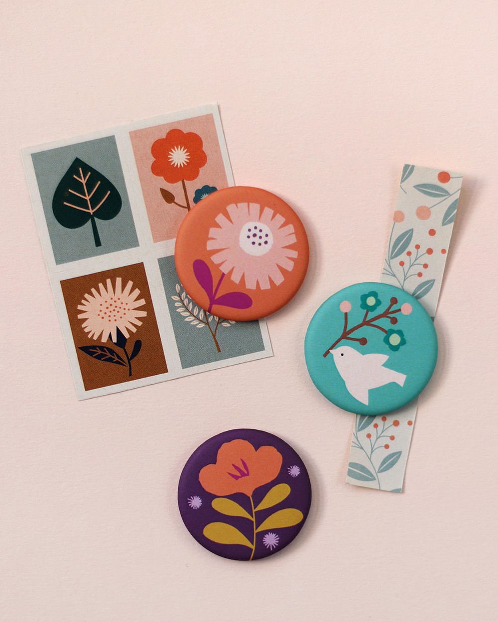 Mini Labo - set fleurige magneten met bloemenprint en vogelprint