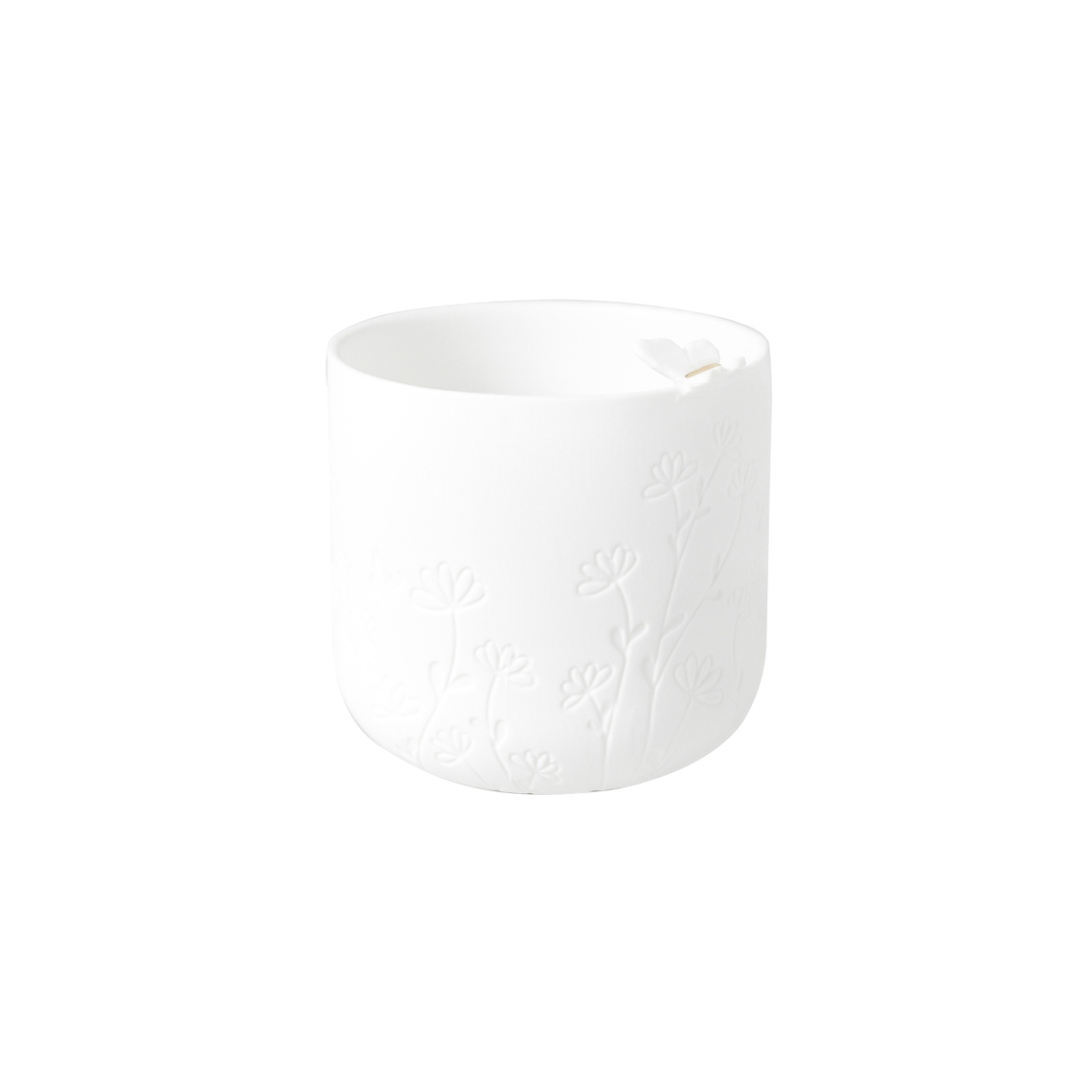bloemetjes of een plantje. De buitenkant is ongeglazuurd en heeft een